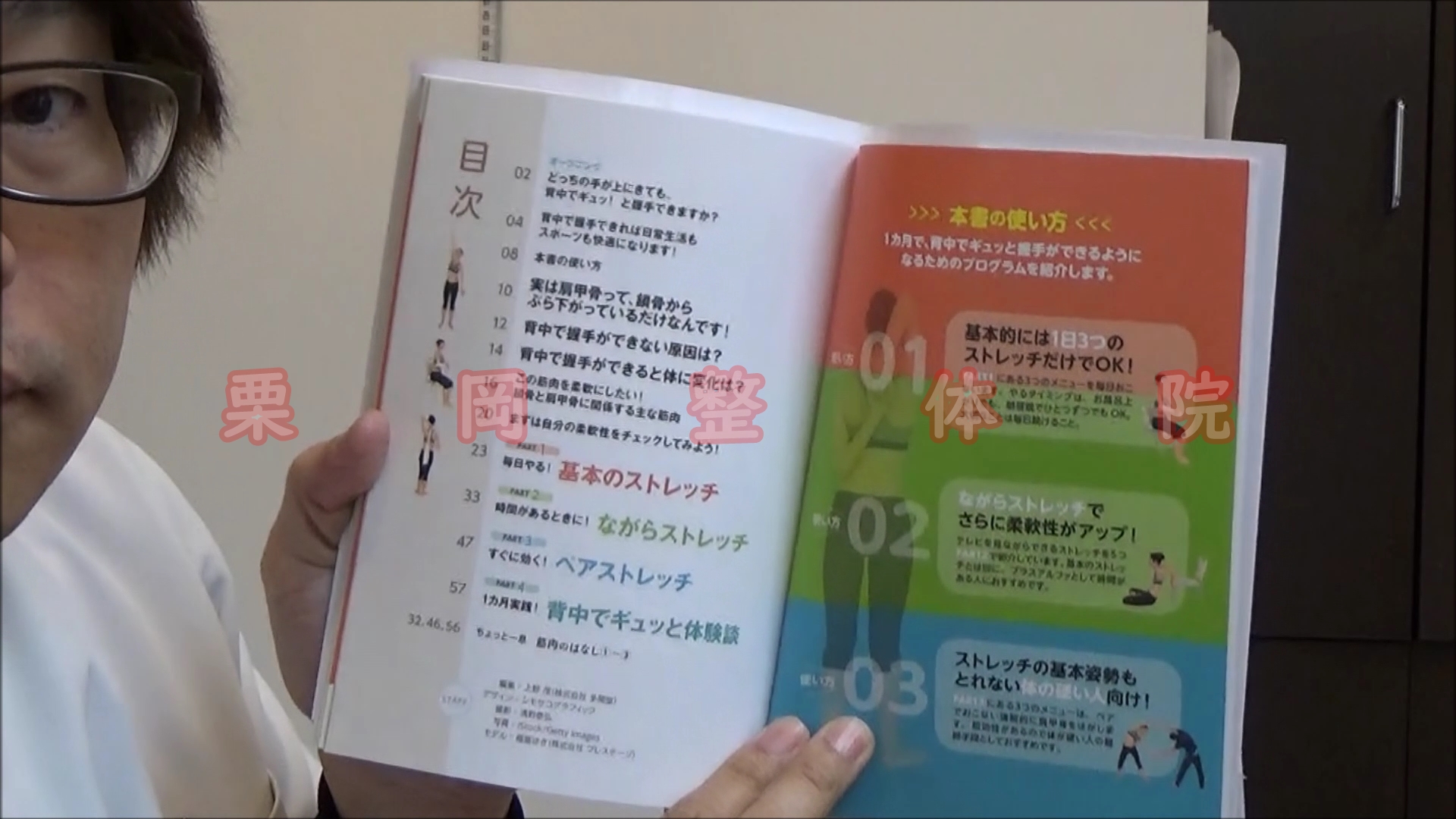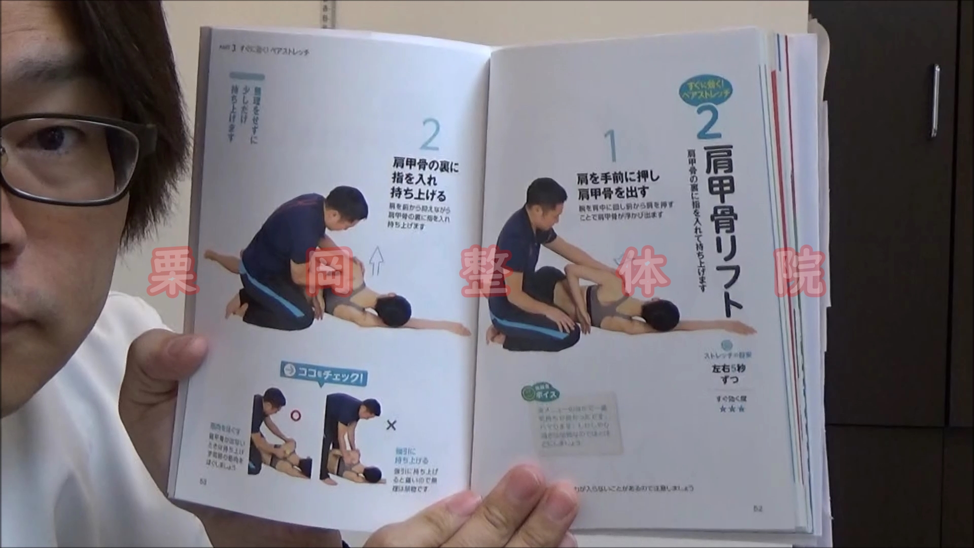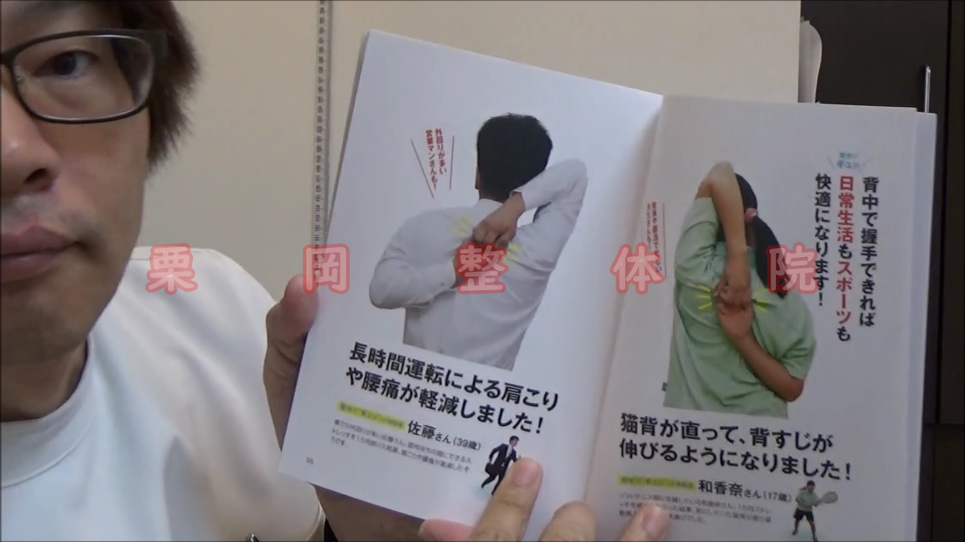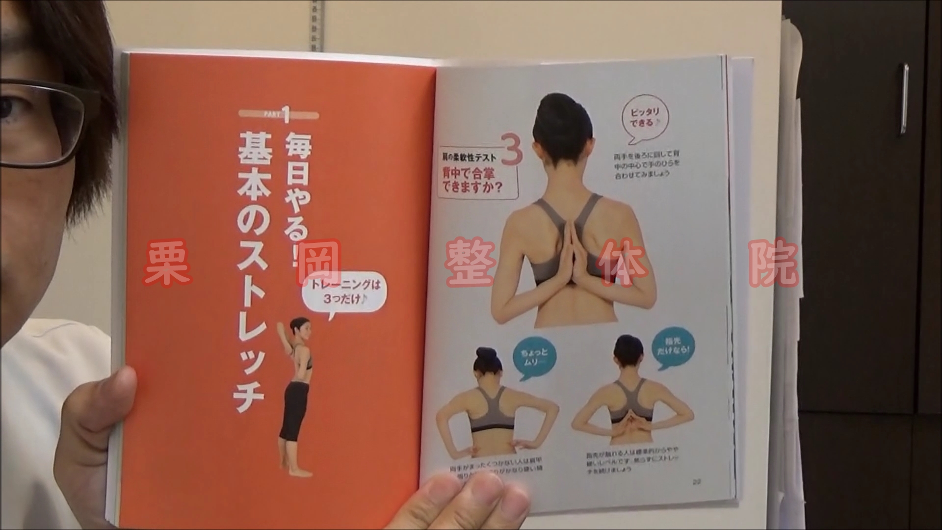 大阪府門真市の栗岡整体院です。 「どんなに体が硬くても背中でギュッと握手ができるようになる肩甲骨ストレッチ(新星出版社)」のギャラリーです。 当然細かい部分は見えにくくしていますので、詳細解説や感想文などは書籍を購入してください。 購入はこちら☞http://www.shin-sei.co.jp/np/isbn/978-4-405-08218-2/