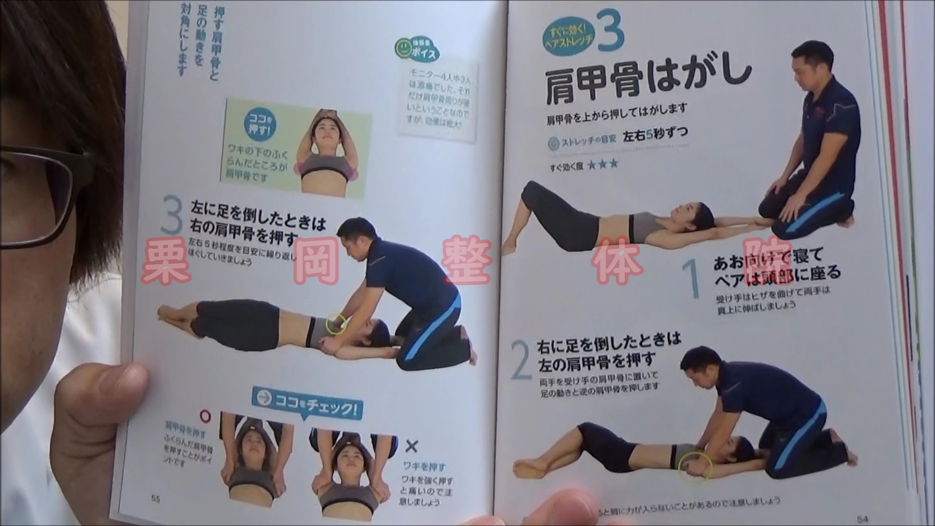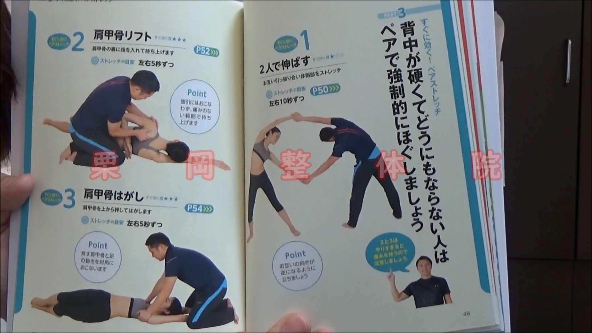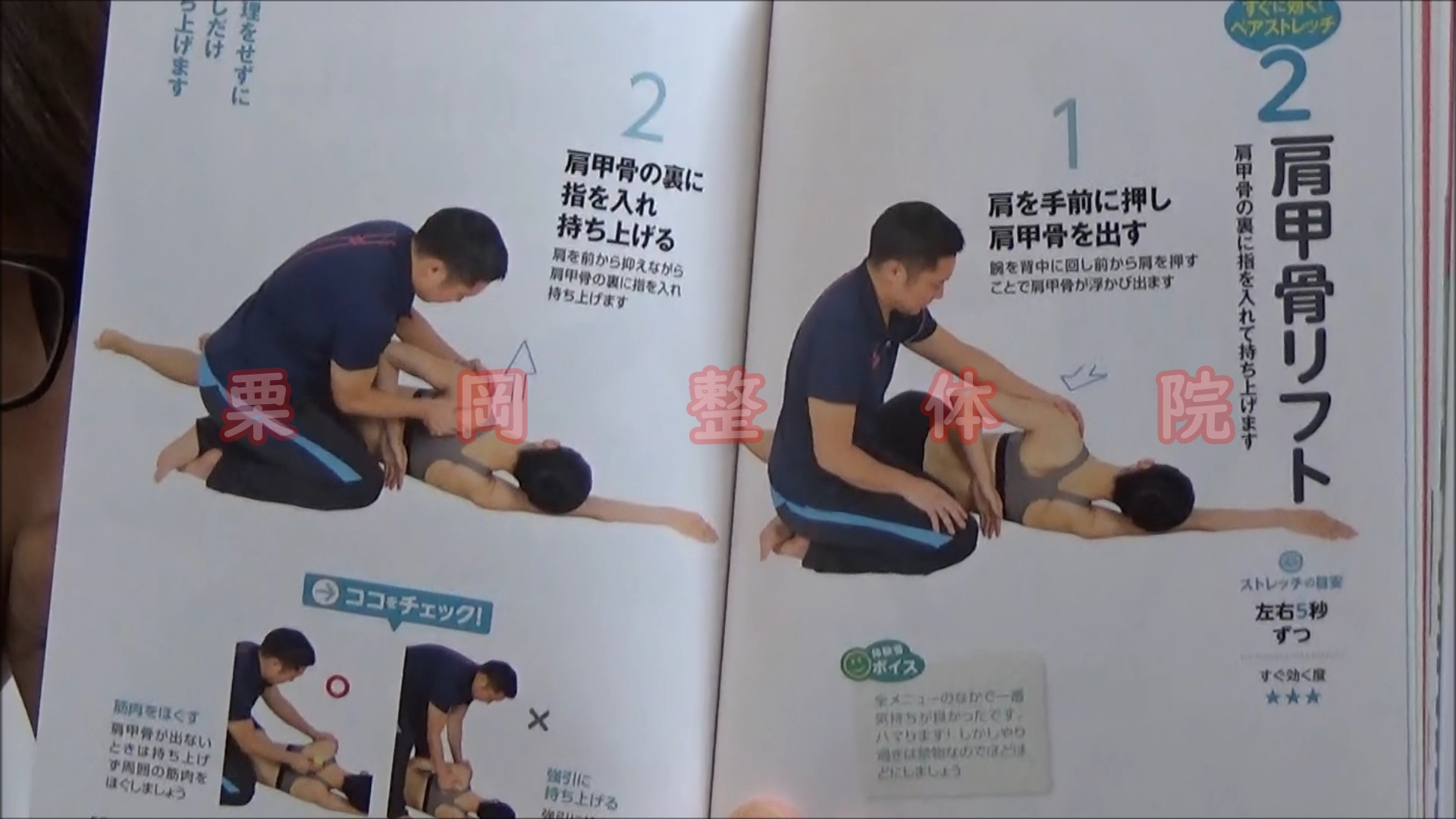 大阪府門真市の栗岡整体院です。 「どんなに体が硬くても背中でギュッと握手ができるようになる肩甲骨ストレッチ(新星出版社)」のギャラリーです。 当然細かい部分は見えにくくしていますので、詳細解説や感想文などは書籍を購入してください。 購入はこちら☞http://www.shin-sei.co.jp/np/isbn/978-4-405-08218-2/