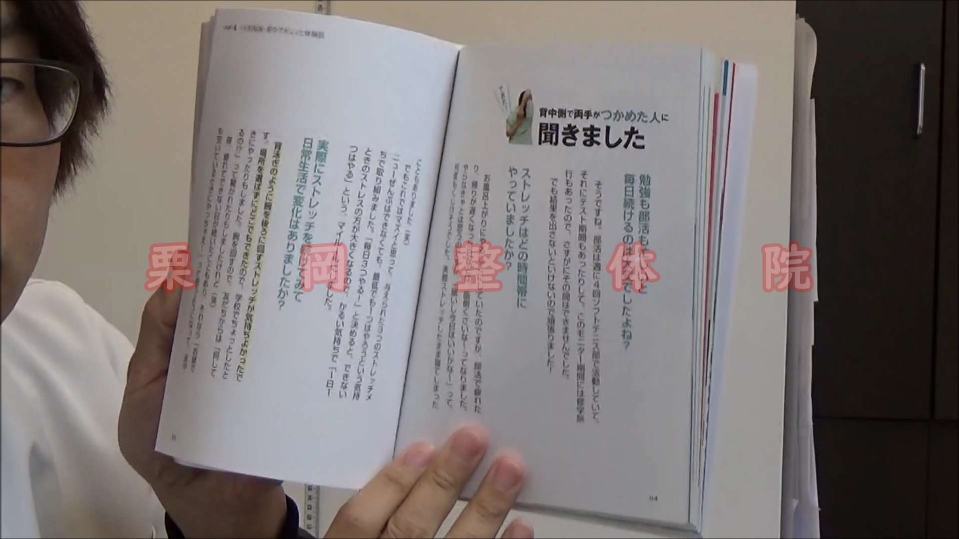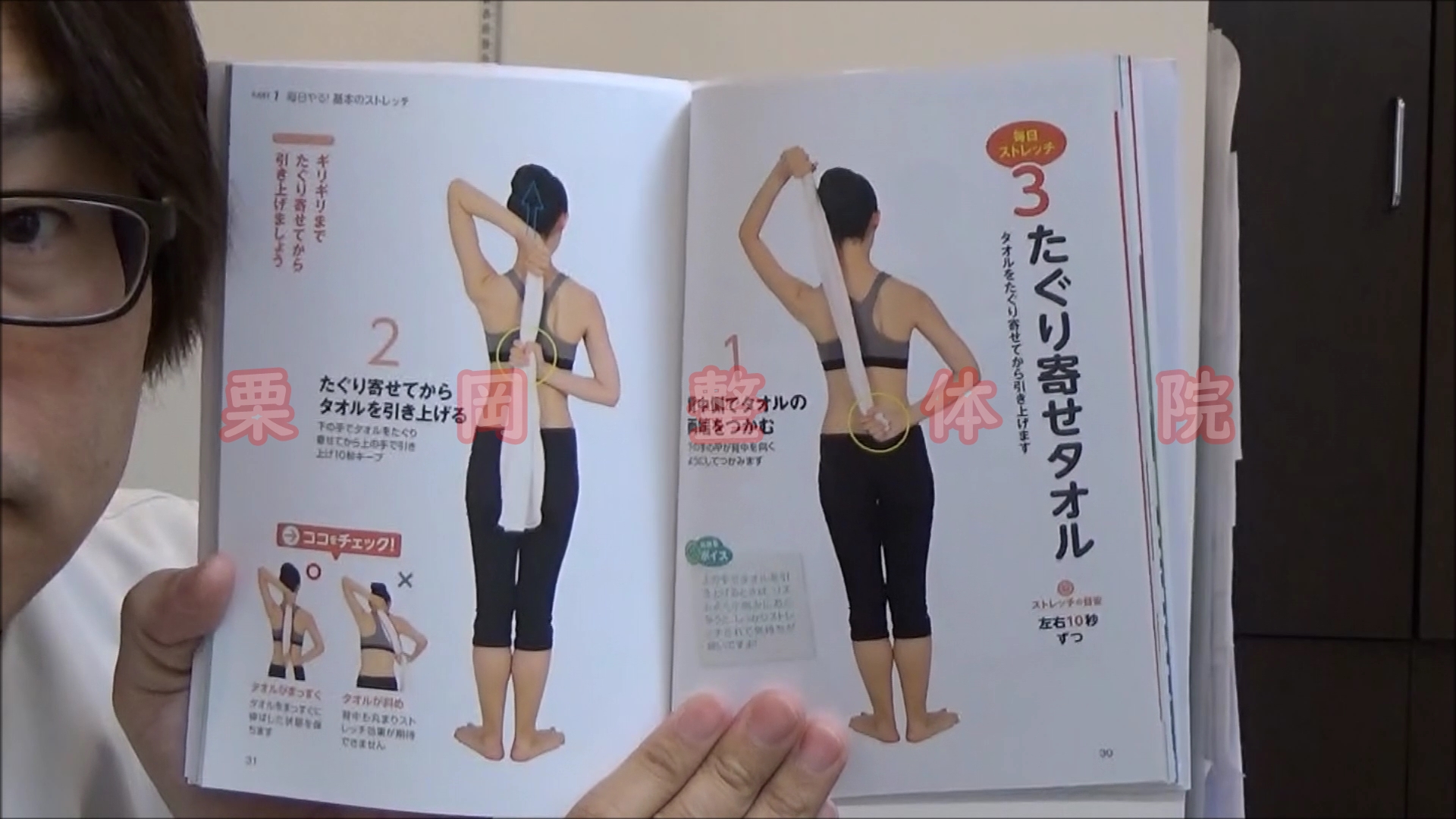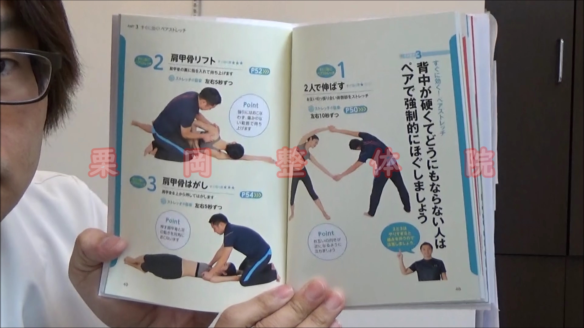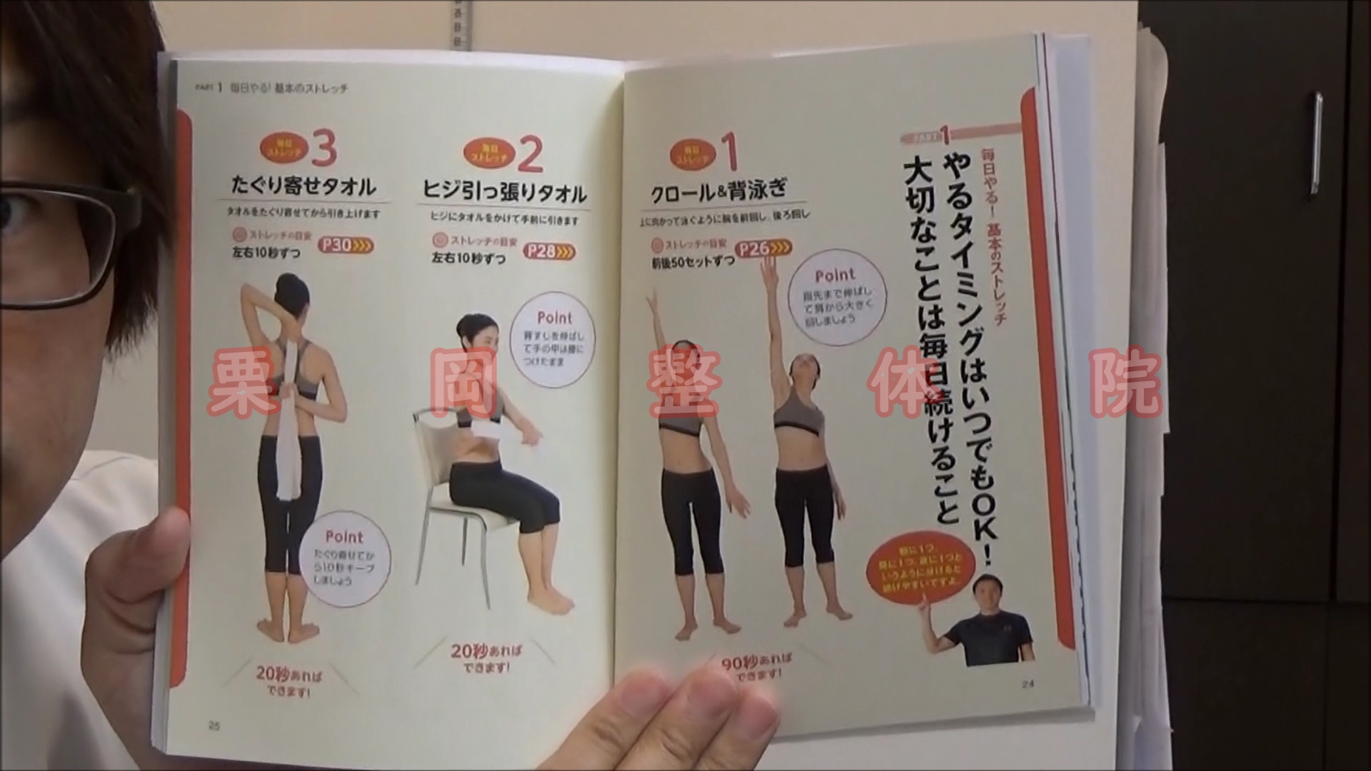 大阪府門真市の栗岡整体院です。 「どんなに体が硬くても背中でギュッと握手ができるようになる肩甲骨ストレッチ(新星出版社)」のギャラリーです。 当然細かい部分は見えにくくしていますので、詳細解説や感想文などは書籍を購入してください。 購入はこちら☞http://www.shin-sei.co.jp/np/isbn/978-4-405-08218-2/