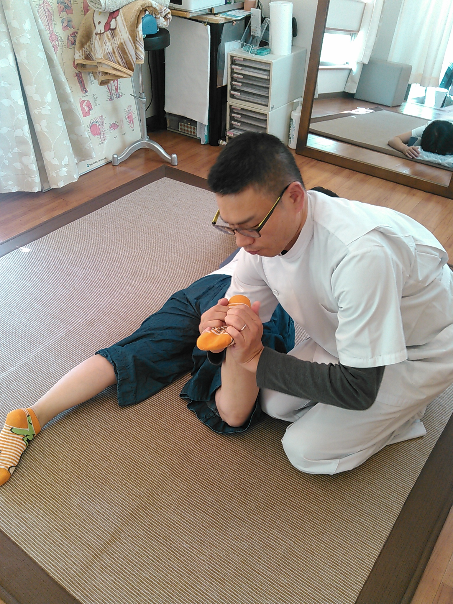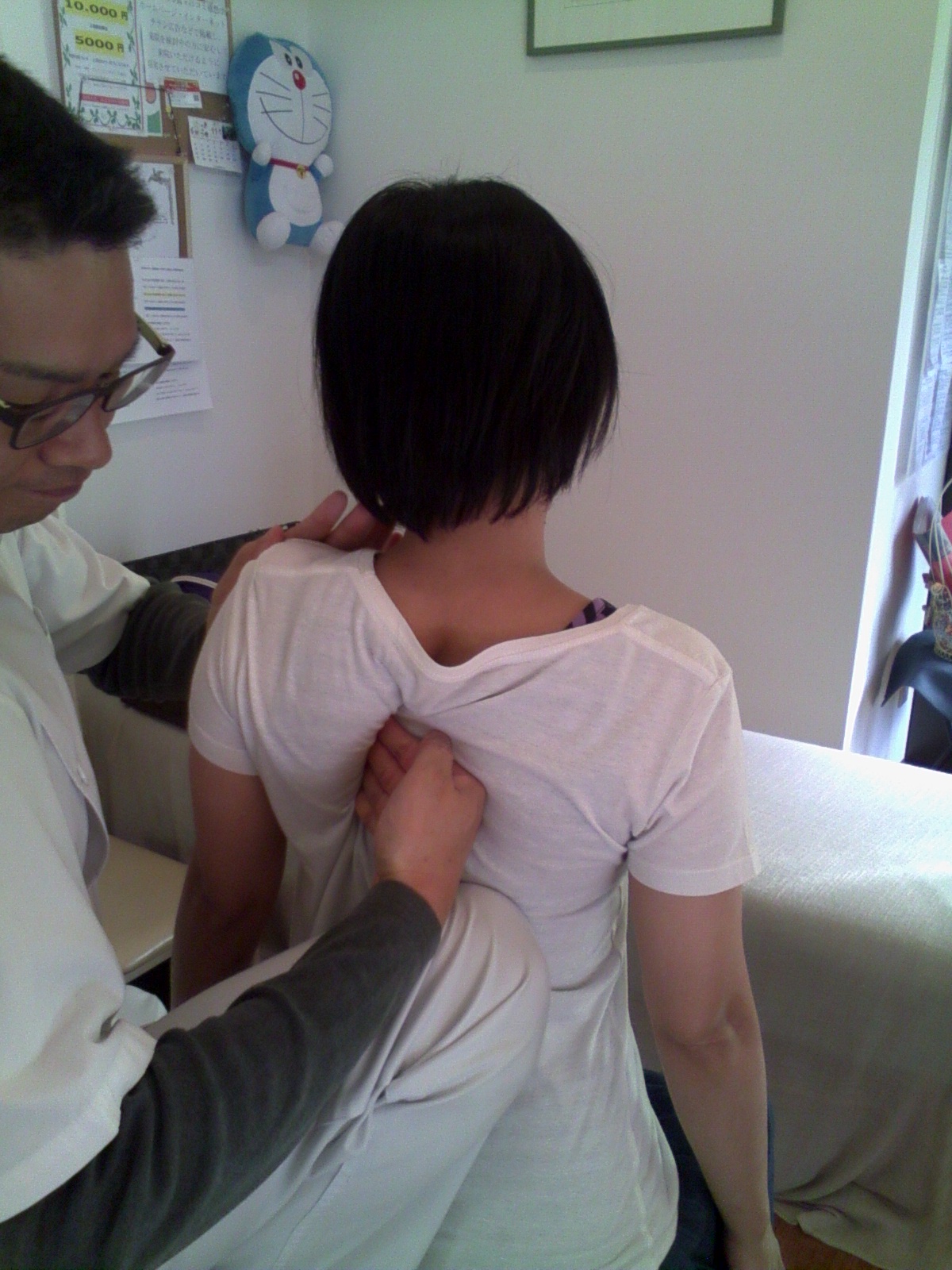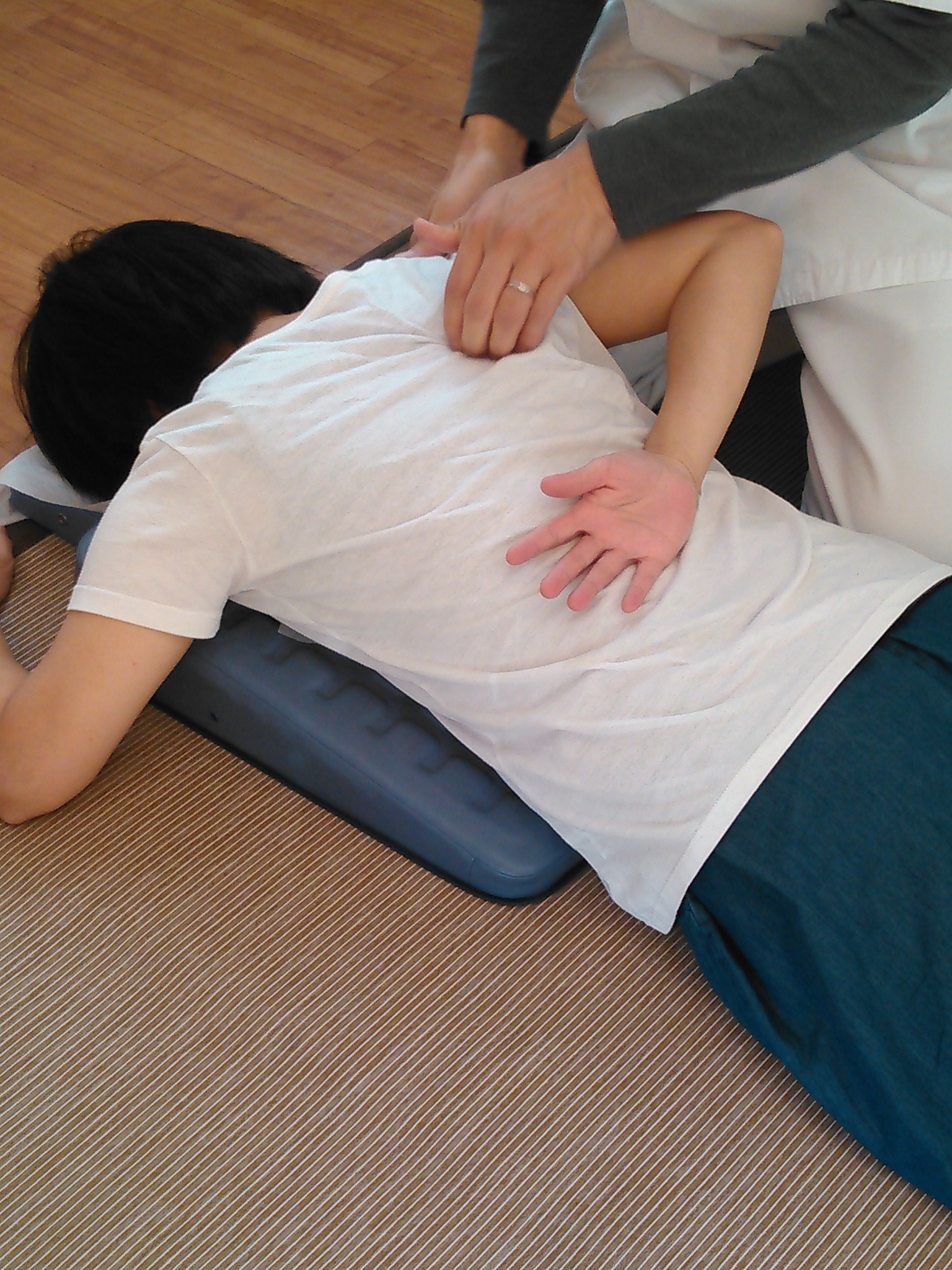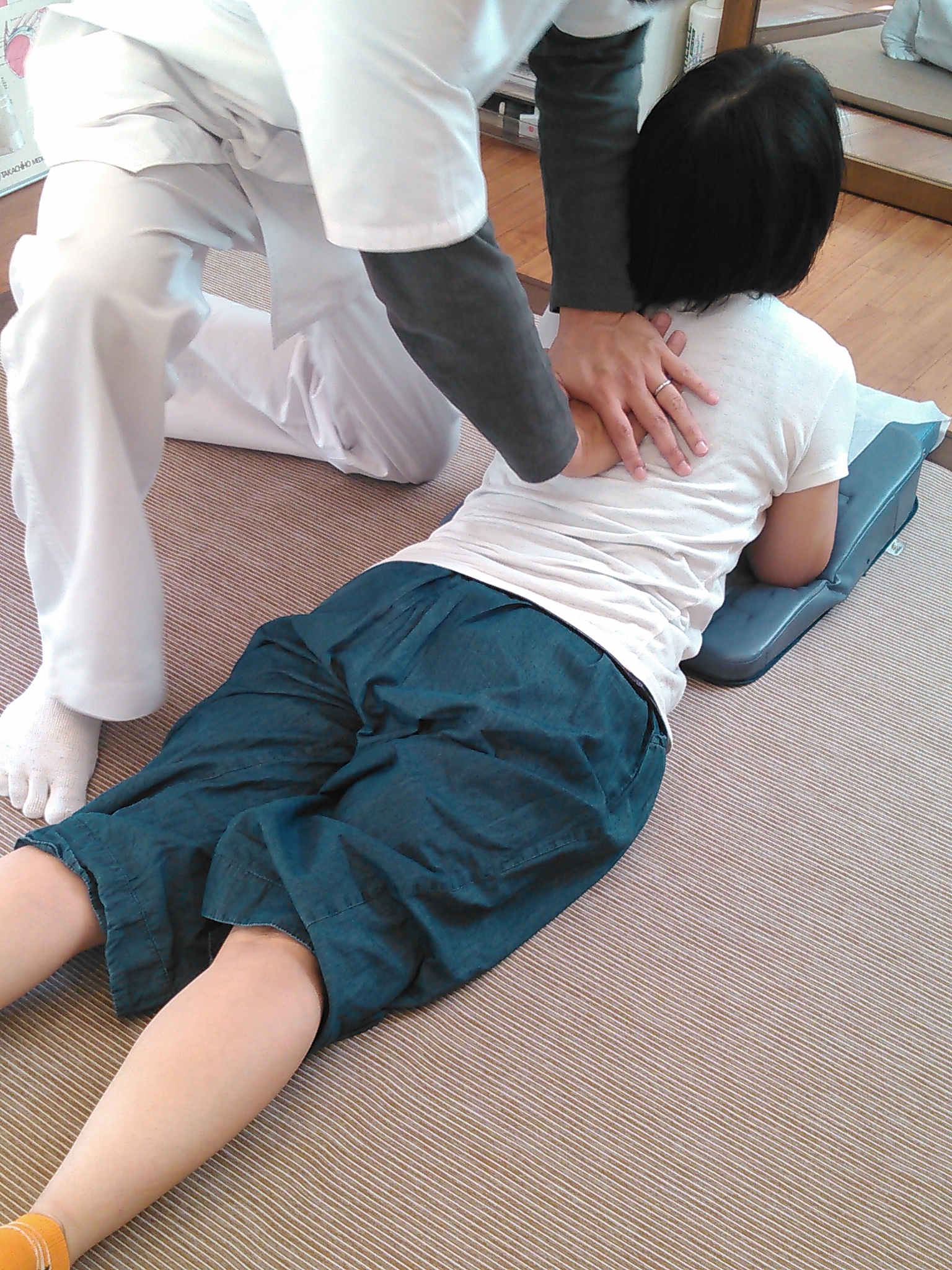 患者様の合意を得て、整体をしている所の写真を撮って解説しています。